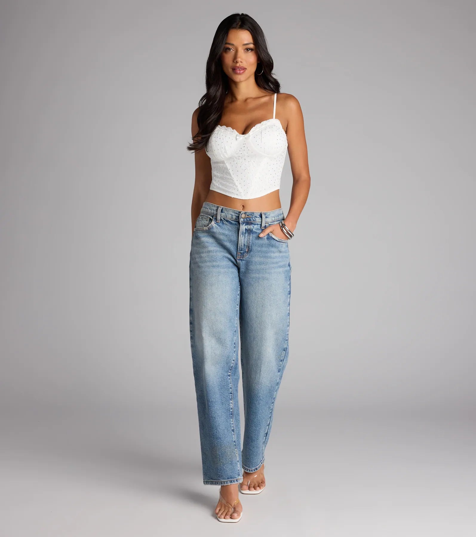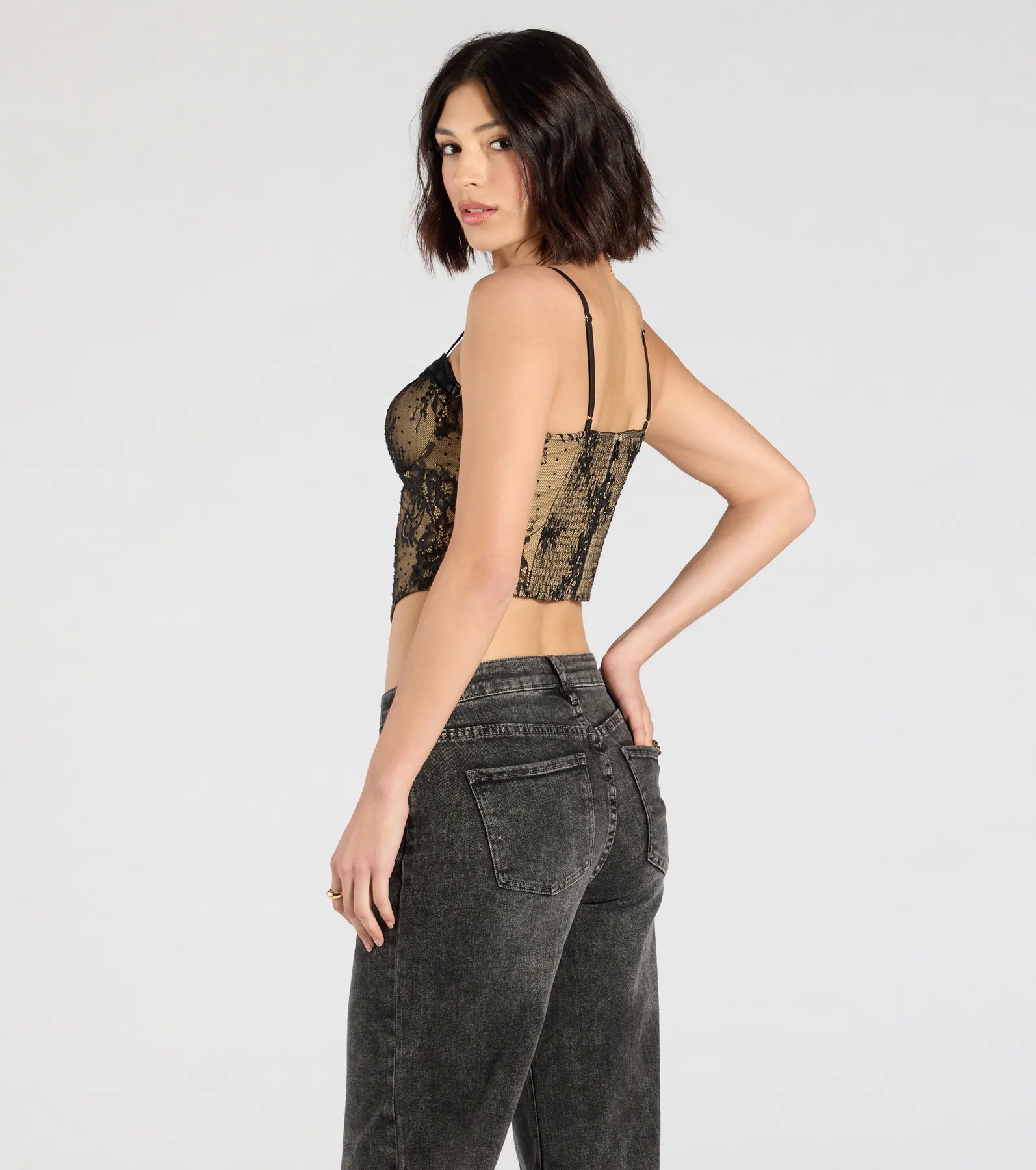 Dare to sparkle in this rhinestone lace bustier on your next night on the town! Designed with a lace trim and fitted hem, this bustier is all about the details that get you noticed.