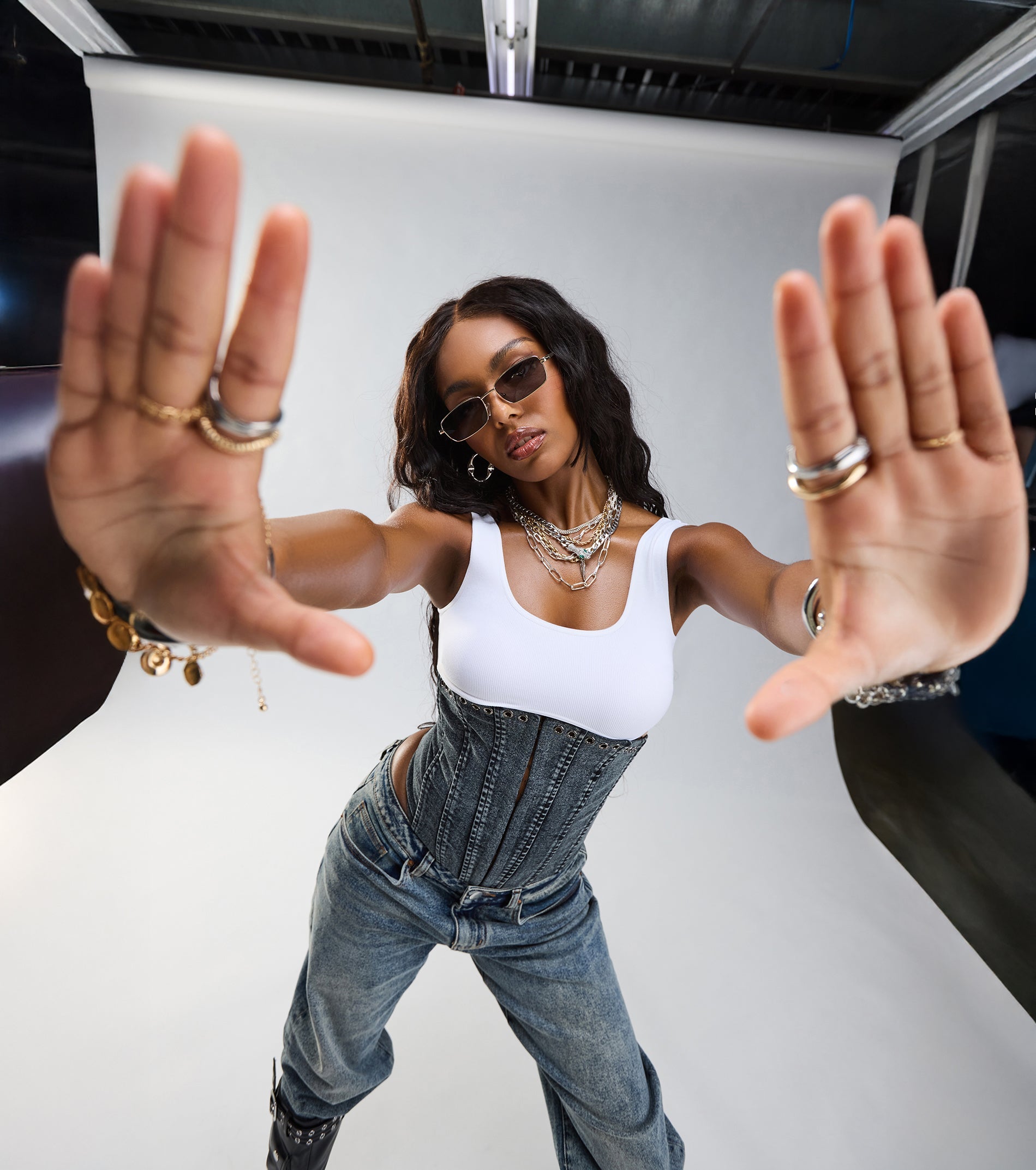 Denim but make it daring¡ªthis strapless corset top stuns with grommet trim, structured seams, and a lace-up back that¡¯s all edge. Pair it with leather shorts and layered jewelry for that downtown it-girl vibe.