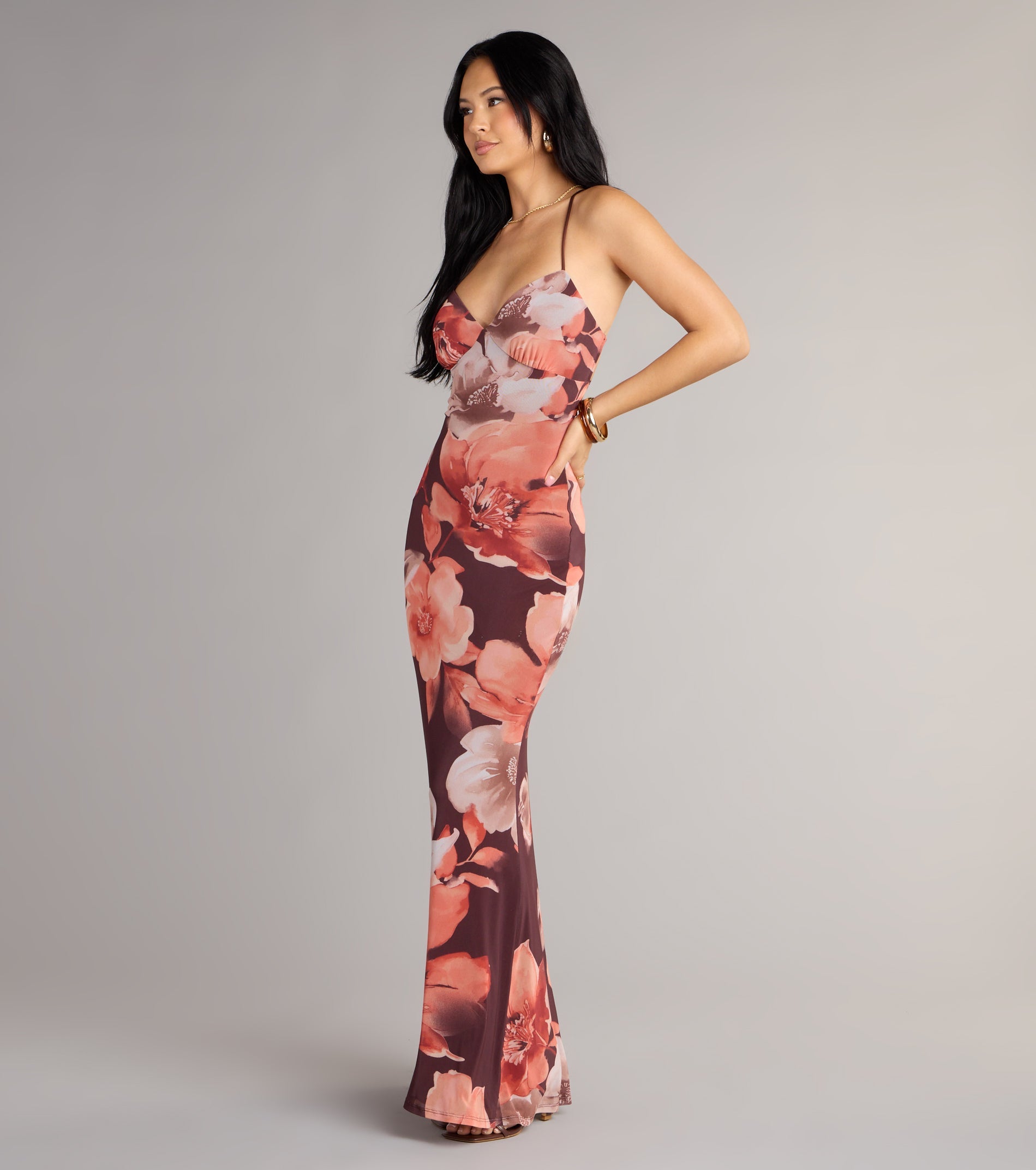 Romantic drama, unlocked—this floral maxi dress hugs in all the right places before flowing into a dreamy silhouette. With strappy back details and bold blooms, it’s perfect for autumn weddings, cocktail nights, or a dressy birthday event.