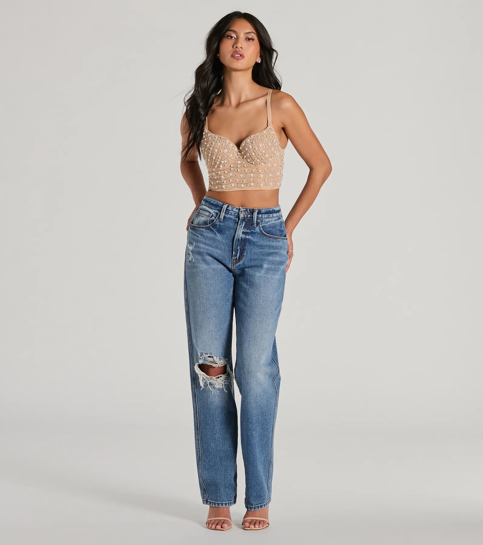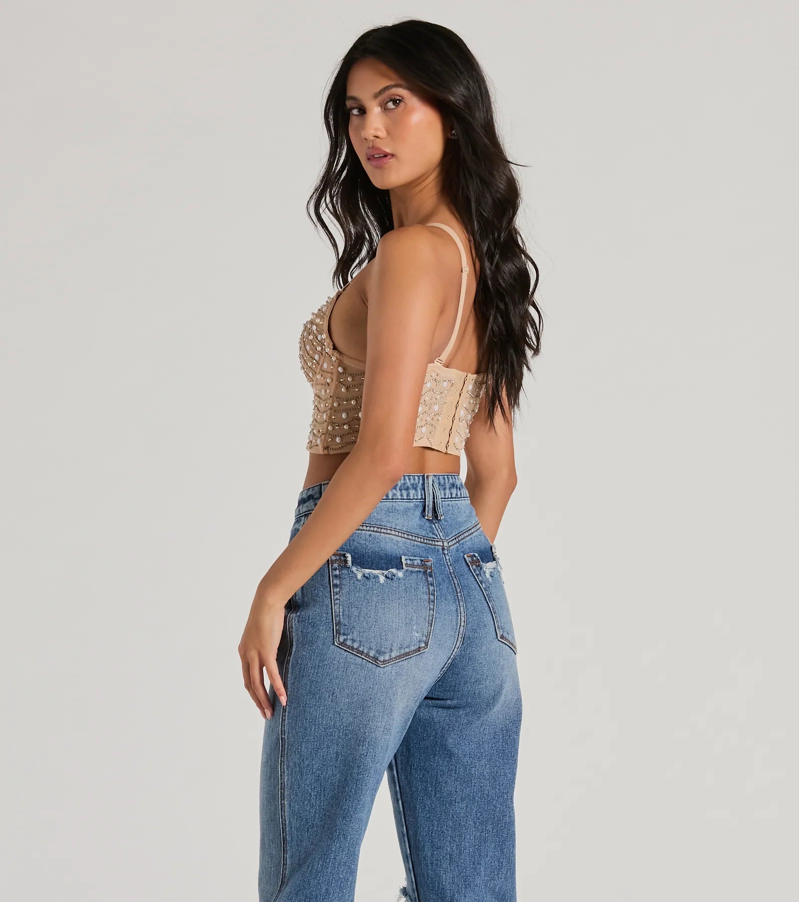 Glamour Girl Rhinestone Faux Pearl Bead Bustier