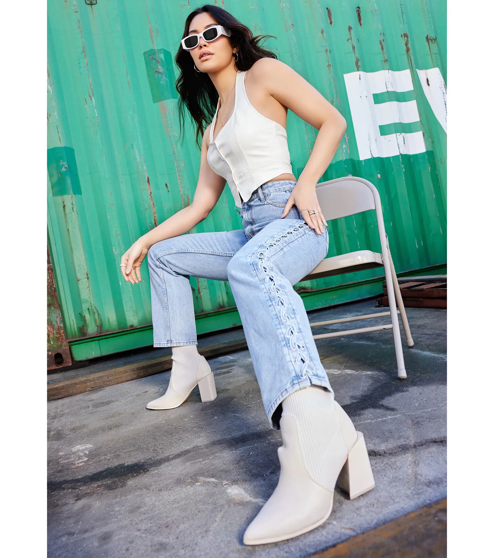 Show off a major slay in this sleek and edgy faux leather cropped vest! It features a sleeveless square neckline, halter straps, a partially open back, a button-down front, and a fitted, cropped hem. The smooth faux leather fabric gives off a chic sheen. Complete the look with the matching wide-leg pants and strappy stiletto heels.