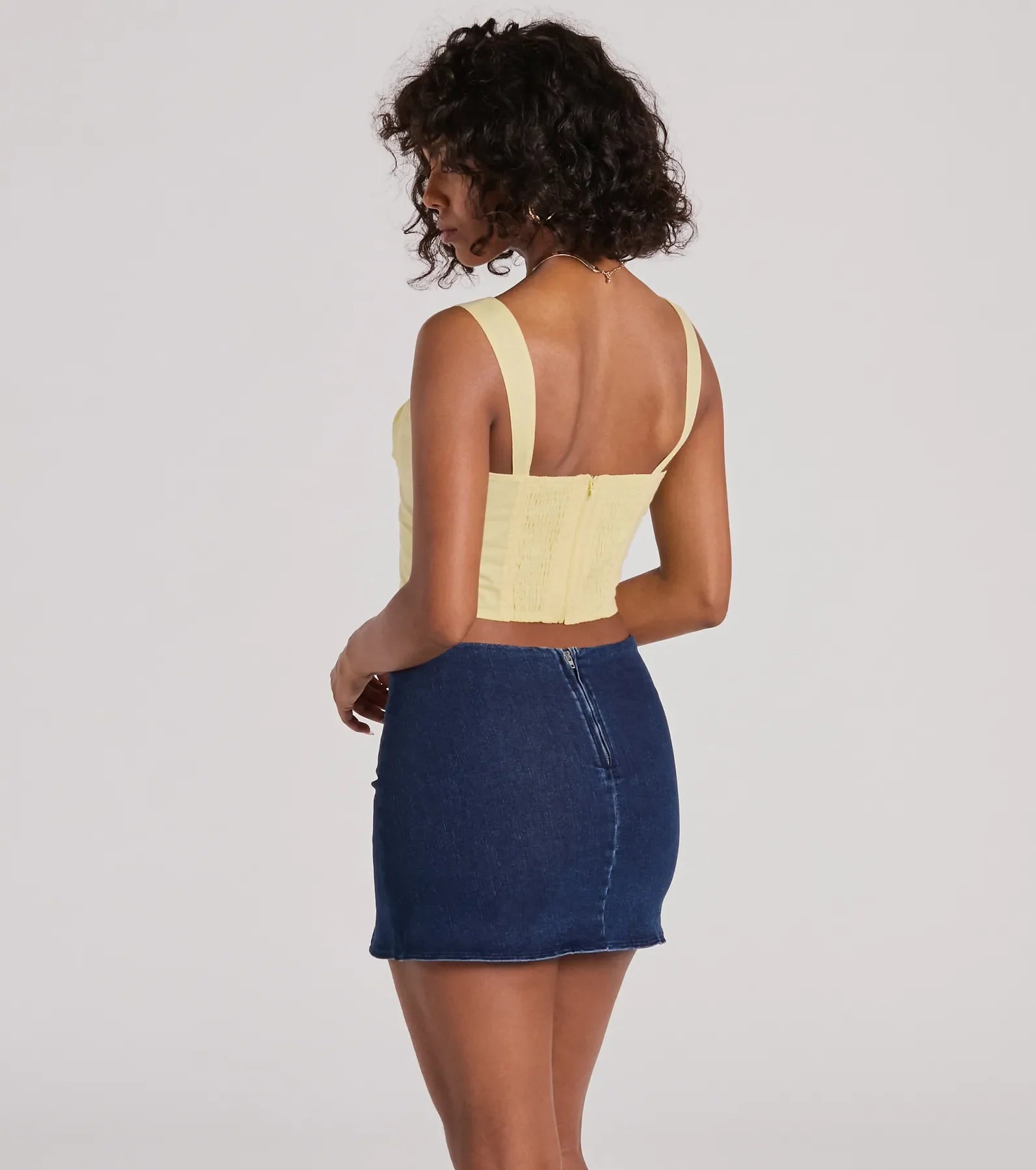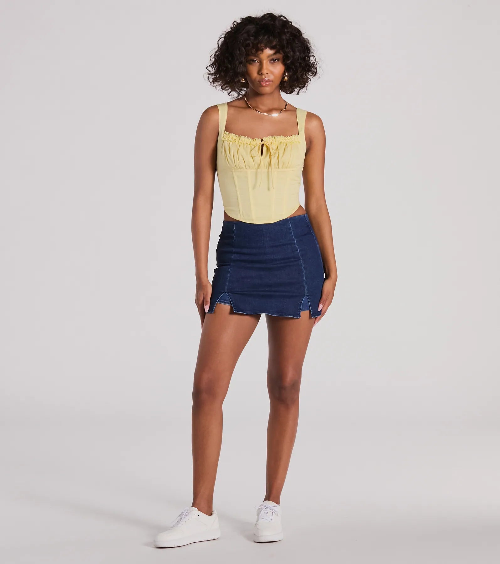 Love will always find you when you have on this floral corset top! Made from a floral print woven fabric, this top is both feminine and stylish. The shoulder straps and lace trim square neckline with bust tie add a touch of elegance, while the ruched bust and fitted crop hem create a flattering silhouette. Complete the look in stylish distressed denim jeans.
